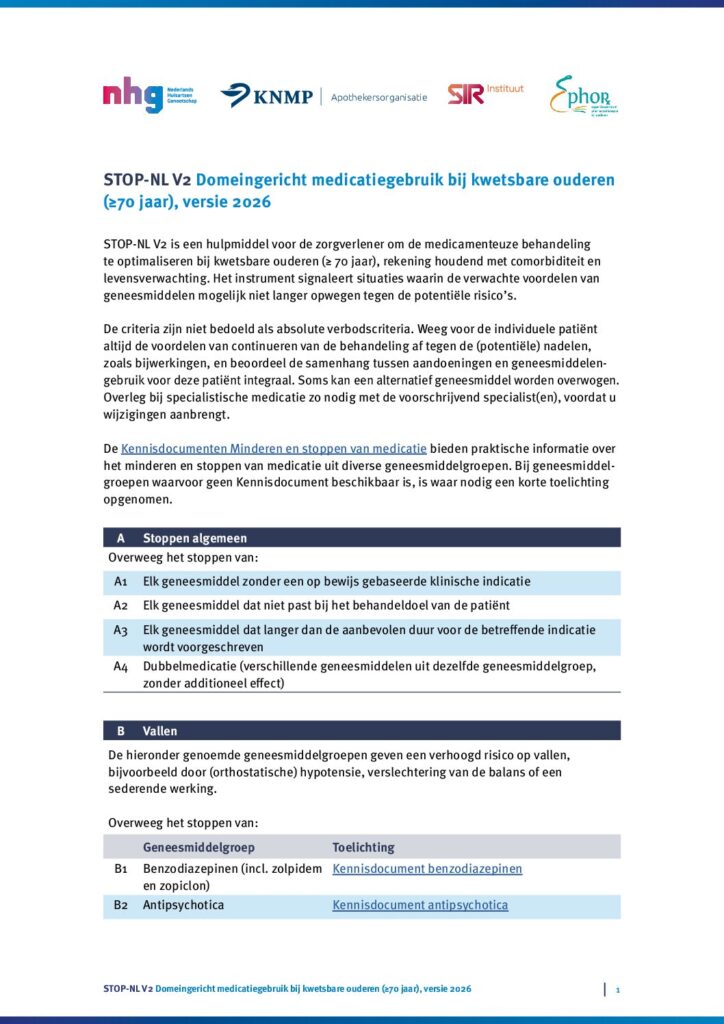 Onderdeel van de multidisciplinaire richtlijn Polyfarmacie bij ouderen